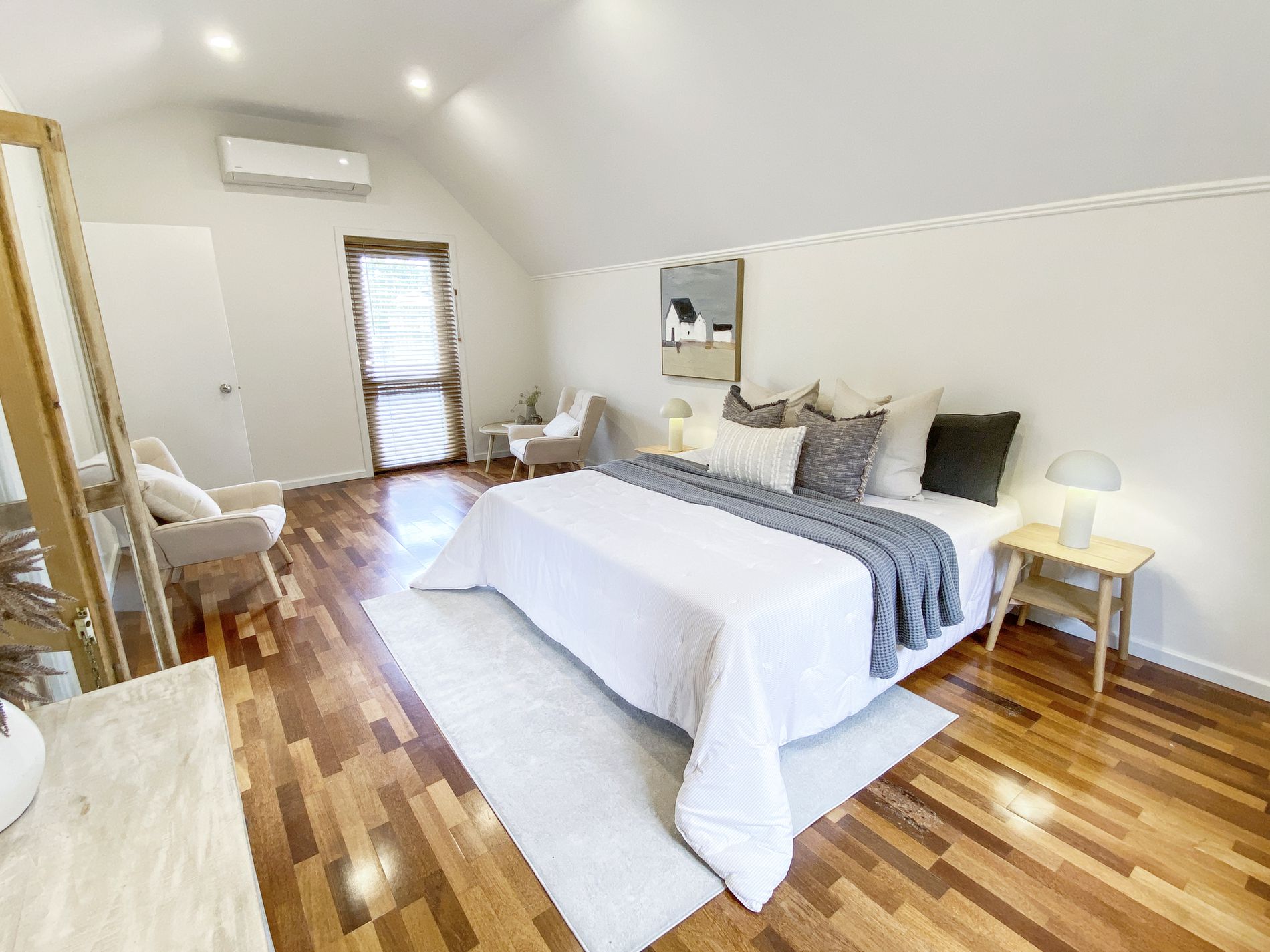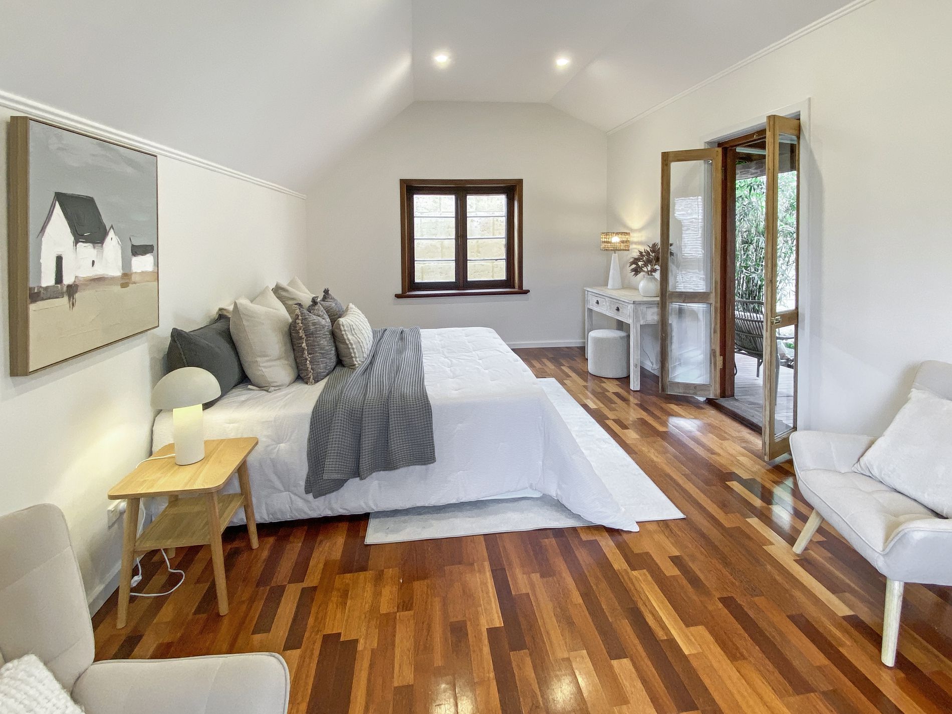 Each bedroom is spacious, with the largest offering the serenity of a yoga or healing retreat, while the fourth room provides flexibility as a home office or additional bedroom. The tranquil rear garden, complete with a zen-like atmosphere, invites you to unwind amidst its lush surroundings, complemented by the lovely wrap-around veranda.