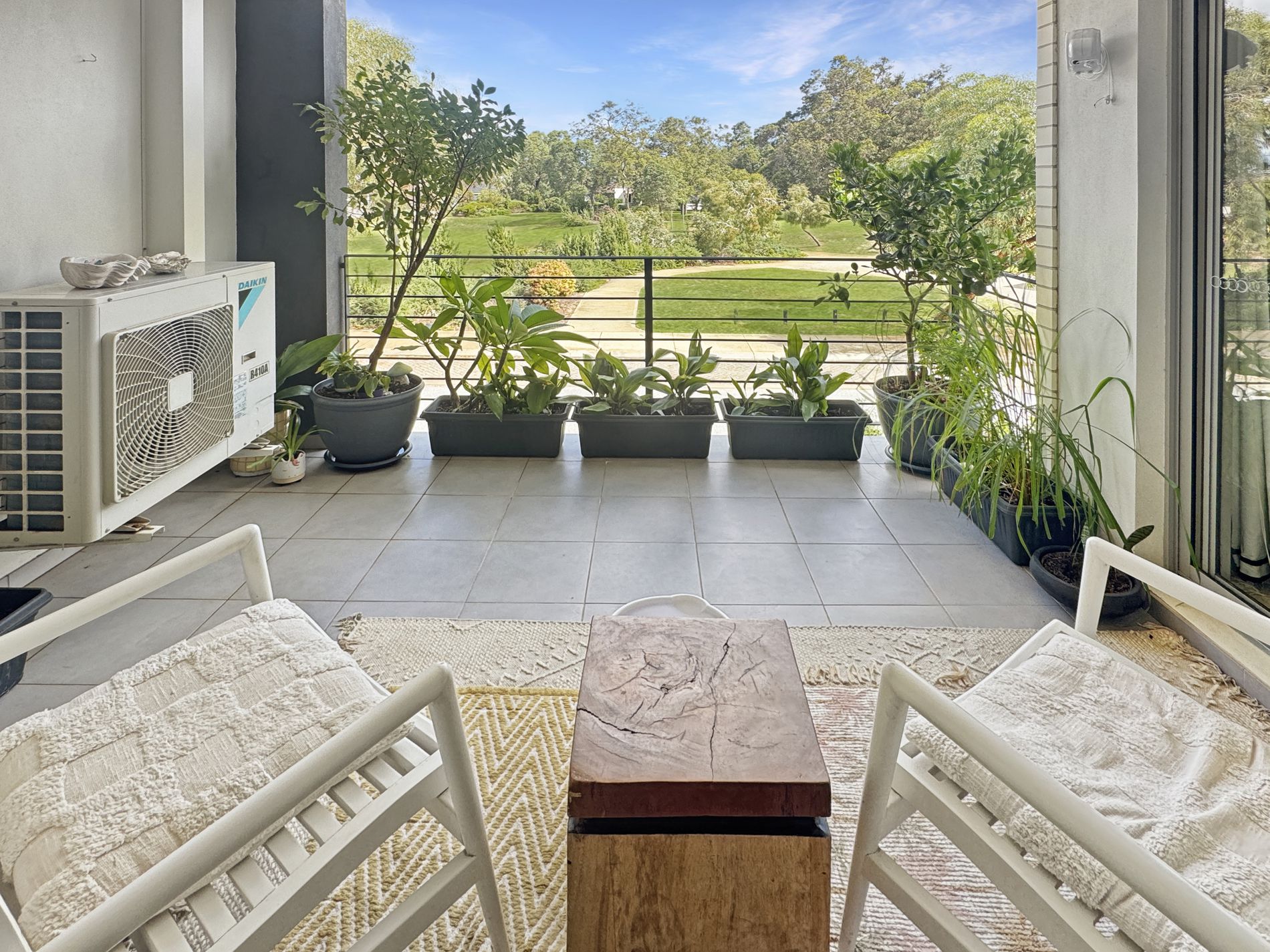 Step inside to discover a light-filled, open-plan living and dining area, seamlessly connected to a generously sized balcony-ideal for alfresco entertaining or relaxing while enjoying tranquil parkland views. The modern kitchen boasts sleek stone benchtops, a breakfast bar, a wide fridge recess, a dishwasher, and ample storage, catering perfectly to daily needs.