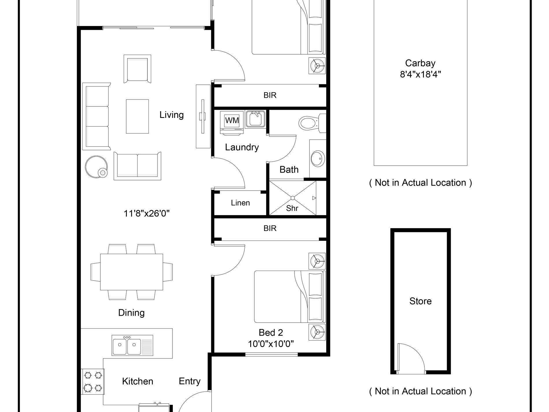 Both spacious bedrooms are fitted with built-in robes, providing ample storage. The bathroom is finished to a high standard with quality fixtures, while ducted reverse-cycle air conditioning ensures year-round climate control.